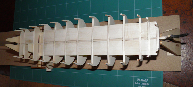 Wkleiłem wręgi wraz z klockami odstępowymi.
