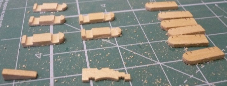 Zacząłem także wykonywanie artylerii: lawety dział nabierają coraz bardziej zadowalających kształtów - te z zestawu OcCre to porażka. Efekty na zdjęciach - na razie pierwszy etap. Po zakończeniu efekt powinien być zadowalający.