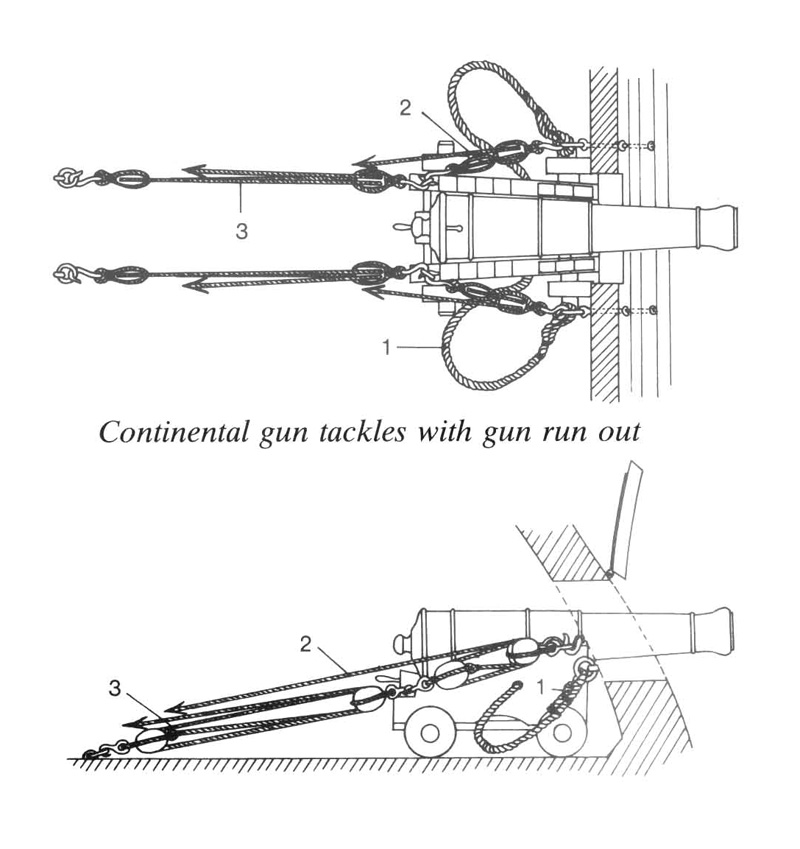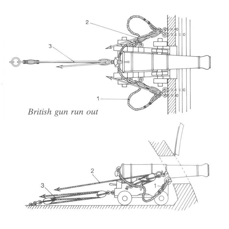 Docelowo chcę wykonać olinowanie przy lawecie jak na zalączonym zdjęciu - jest to (jak widać) typowe dla żaglowców brytyjskich, a ja wykonują hiszpański. Czy ma ktoś informacje jak to wyglądalo na żaglowcach made in spain ?