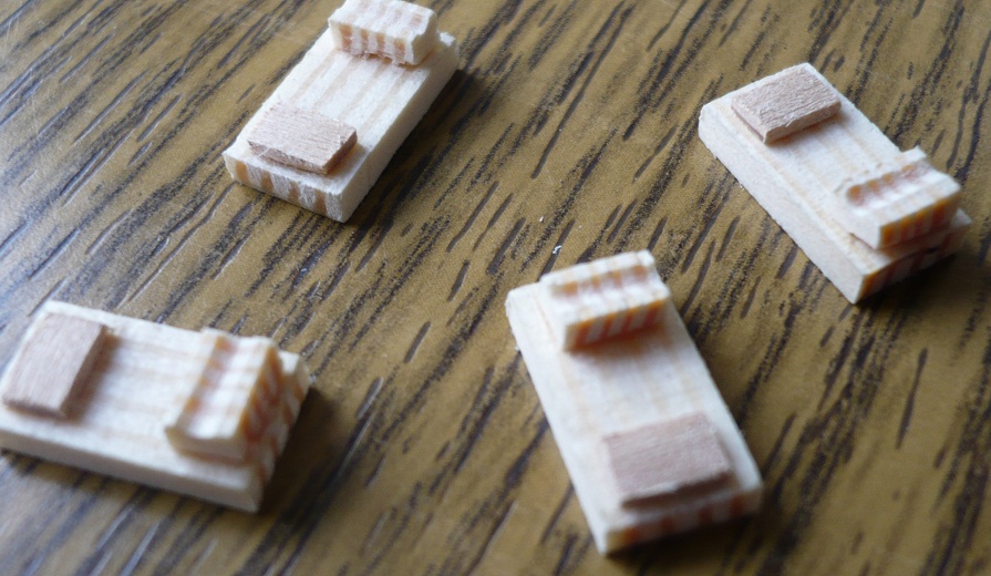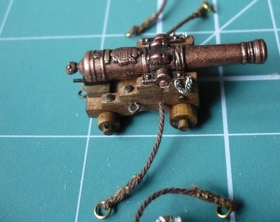 Dodatkowo przygotowuję 4 karonady (dokupione elementy Amati) - metalowe podstawy będą pomalowane na czerwono - górna pod samą karonadą już z drewna. Stan zaawansowania prac na zdjęciach.