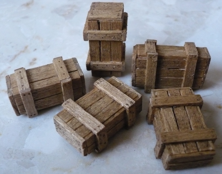 W czasie wysychania warstw na kadłubie powstały skrzynki z listewek szerokości 2,5mm (jeszcze trochę szlifowania, kołkowanie - otworki 0,3mm już są - i druga warstwa bejcowania)
