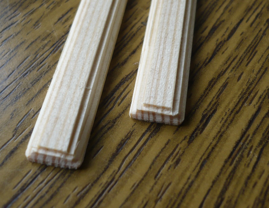 Rozpocząłem przygotowywanie poręczy górnych (z listewek 7x3mm). Podłużne żłobienia wykonałem mikrofrezami z użyciem narzędzi Proxxon (stojak, wiertarka...) Poprzeczne juz ręcznie.