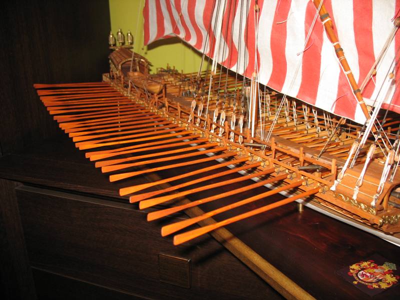 no w końcu się zmobilizowałem i powiązałem wiosełka zdjecia trochę ciemne bo tak na szybko dopiero co robione przy świetle w pokoju ale coś tam widać. Zostały mi jeszcze kotwice i bandery wtedy zrobie trochę zdjęć lepsiejszej jakości