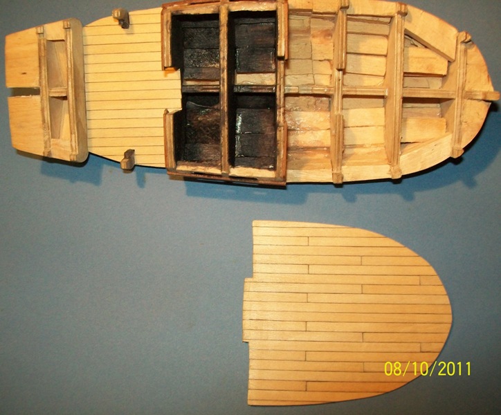 Wypełnienie olchą a następnie szpachla to super sprawa - idealny kształt kadłuba, gotowy pod poszywanie. Nie ma prawa nie wyjść (żebym się nie zdziwił...) Pokłady przeleciały przez ścierarkę bębnową, teraz są równiutkie. Jeszcze została ławeczka, potem cała zabawa w robienie caulkingu, o ile mi się zachce, a póki co do tej pory robiłem co się dało nawet jak mi się nie chciało. Oczywiście robiąc caulking dokładnie opiszę co i jak, aby nie przepadło w czeluściach Kogowych.