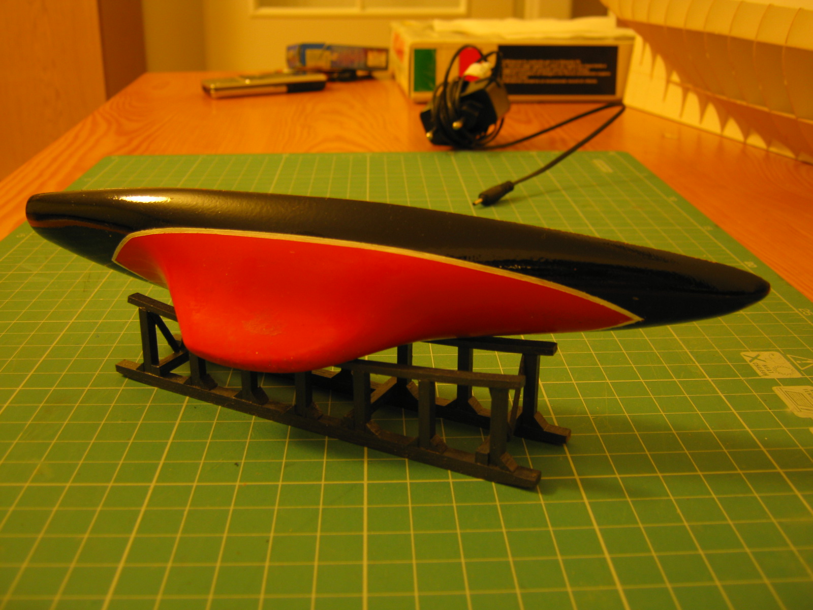 Za poradą jednego z kolegów pomalowałem kadłub na zapodkładowane tylko drewno. Wyszło jak jakiś wytwór niepełnosprawnego czterolatka na kółku plastycznym w MOPSie.