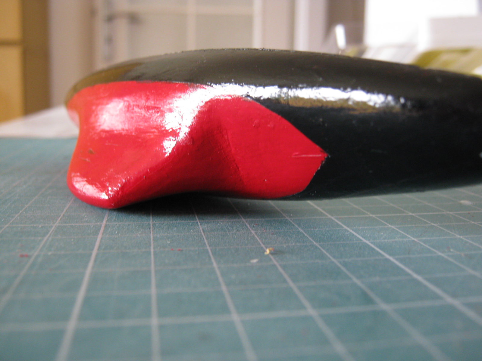 Za poradą jednego z kolegów pomalowałem kadłub na zapodkładowane tylko drewno. Wyszło jak jakiś wytwór niepełnosprawnego czterolatka na kółku plastycznym w MOPSie.