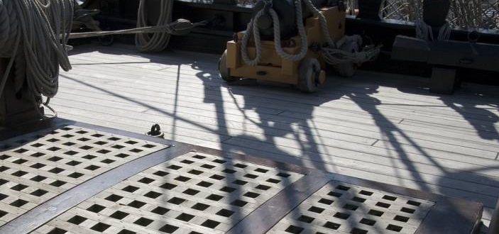 Na tym pokładzie nie ustawiano armat w ten sposób. Tylko na burtach.