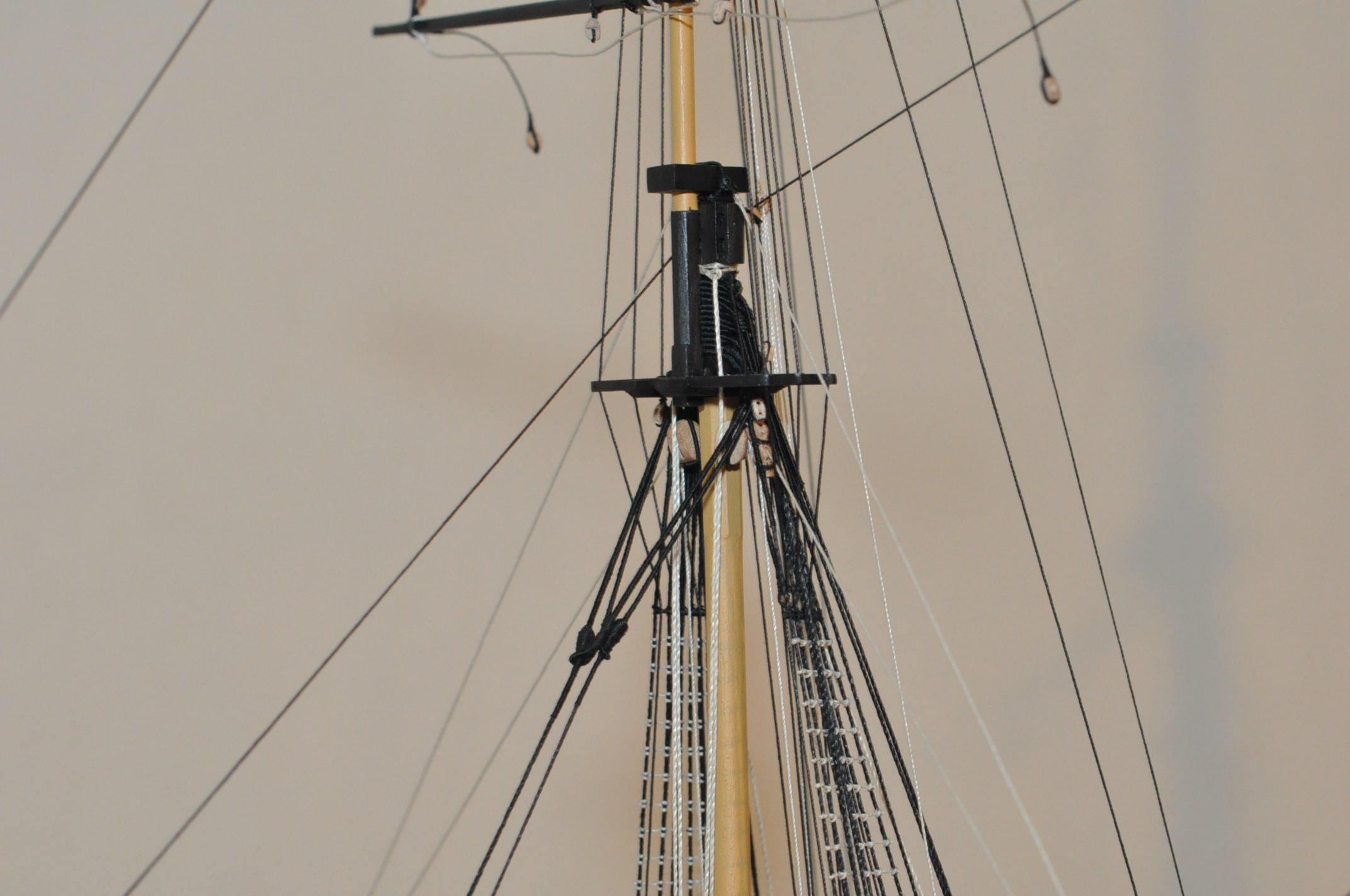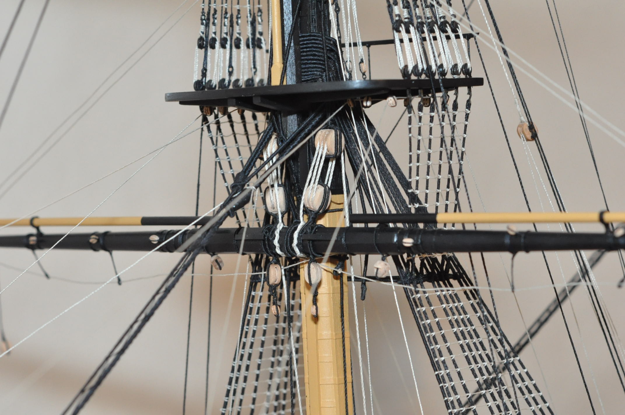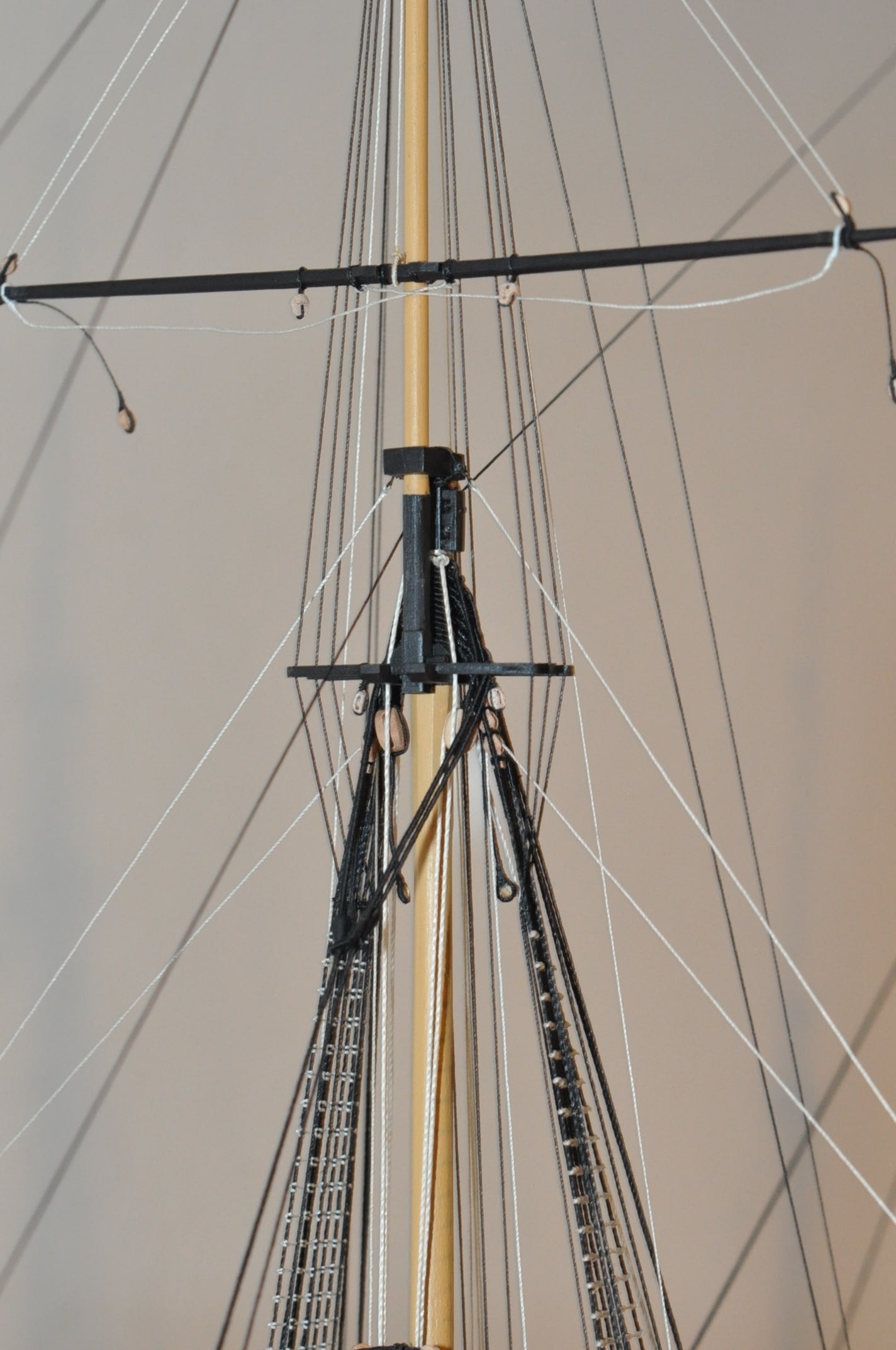 Powiesiłem wszystkie reje na fokmaszcie. Zawiązałem sling ,więźbę , windy , topenanty dla fokreji oraz więźbę , cięgła i topenanty dla dwóch pozostałych . Teraz będę wieszał reje grotmaszcie