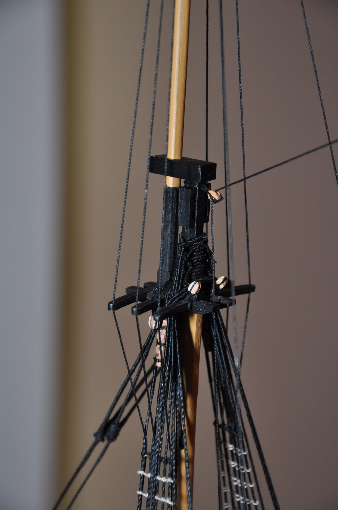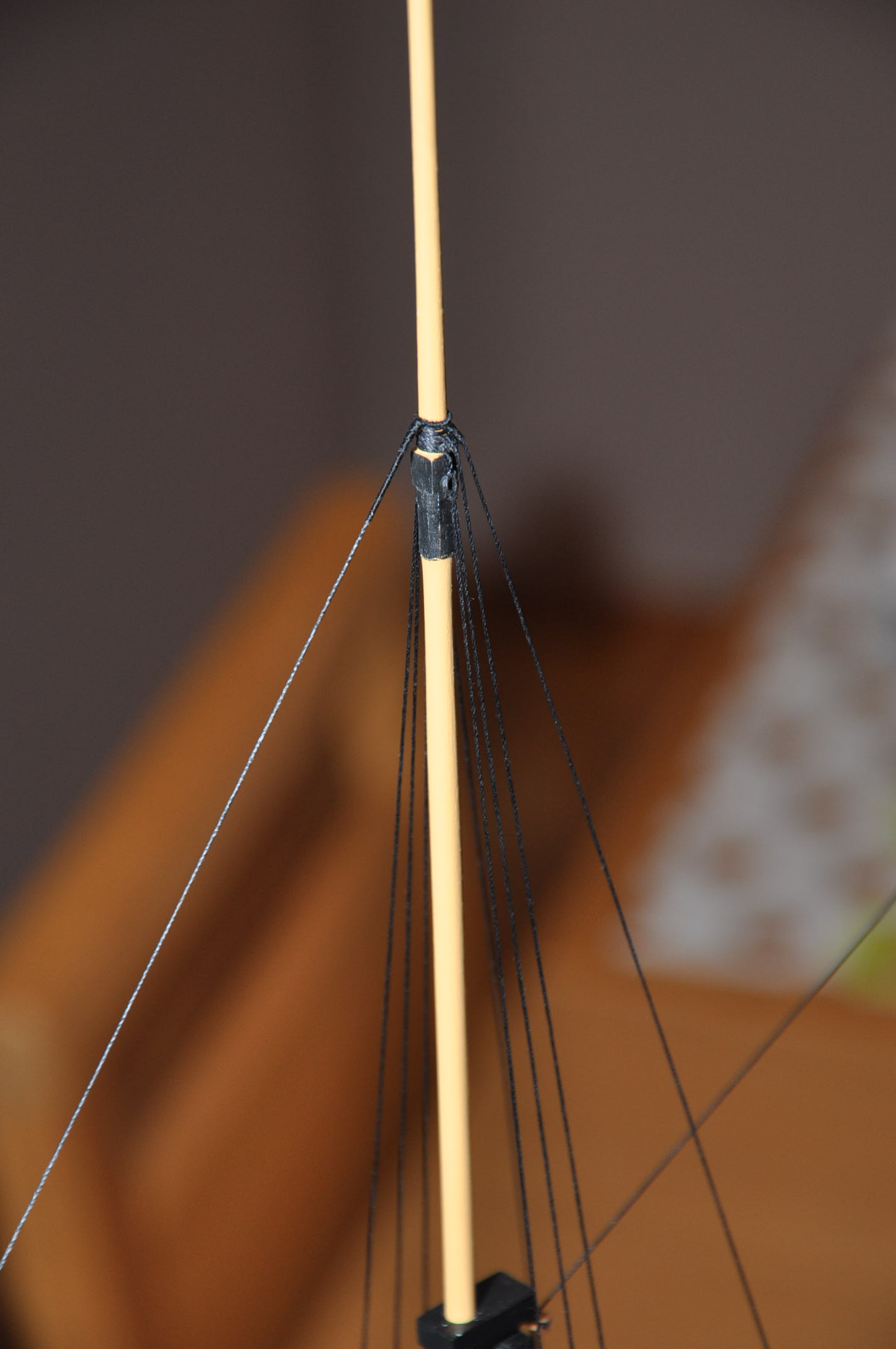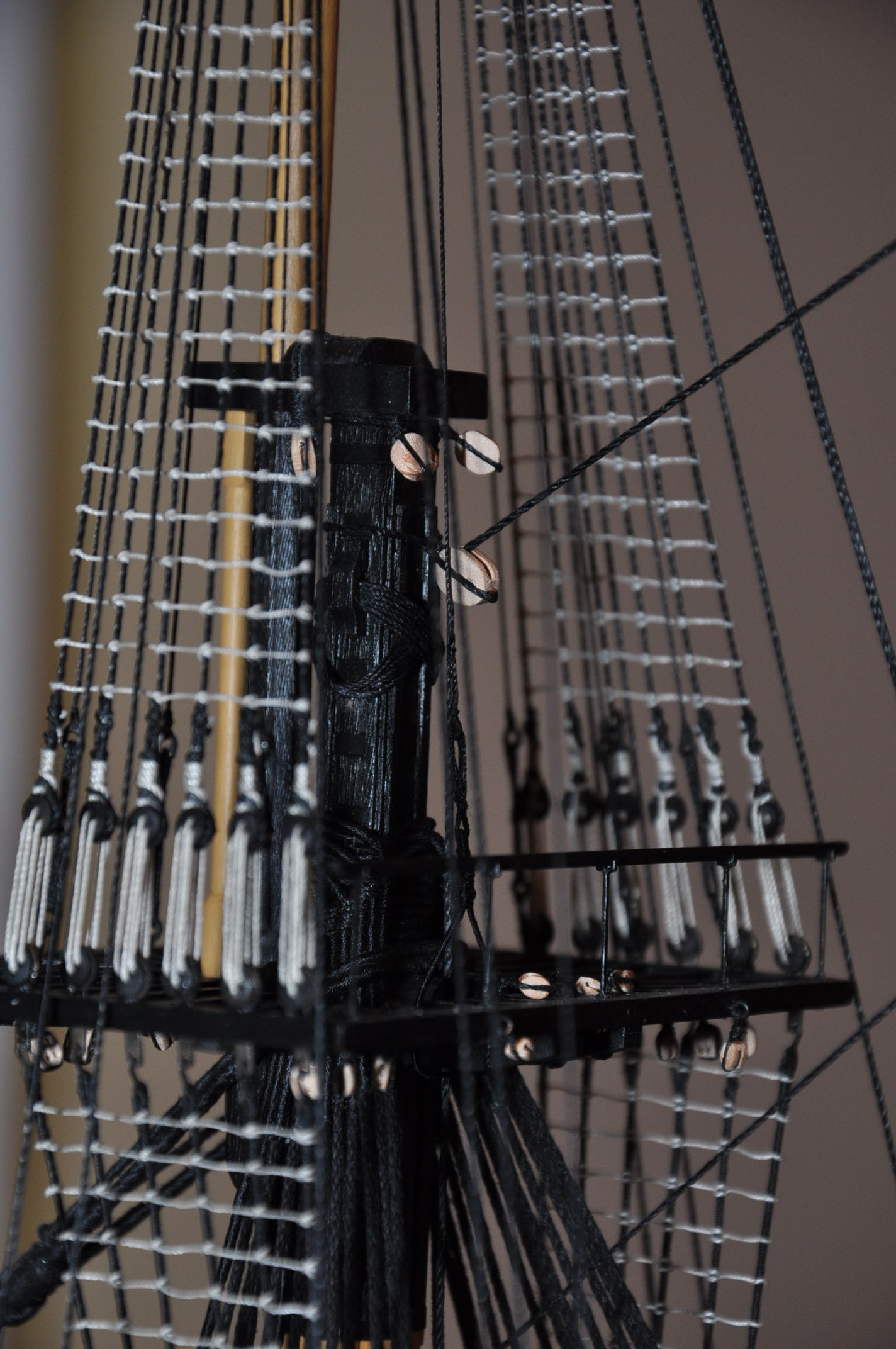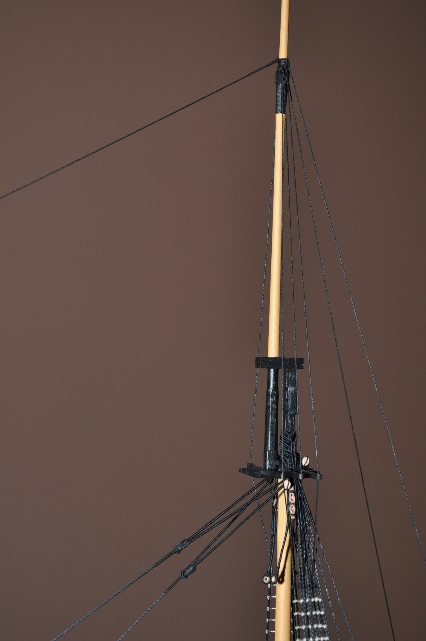 Witam . Mój model będzie wykonany bez żagli . Z tego powodu mam wątpliwości jak przywiązać gordingi . Liny były mocowane do dolnego brzegu żagla . Jak powinny być zabezpieczone w przypadku jego braku ? Czy powinny być zdjęte ?