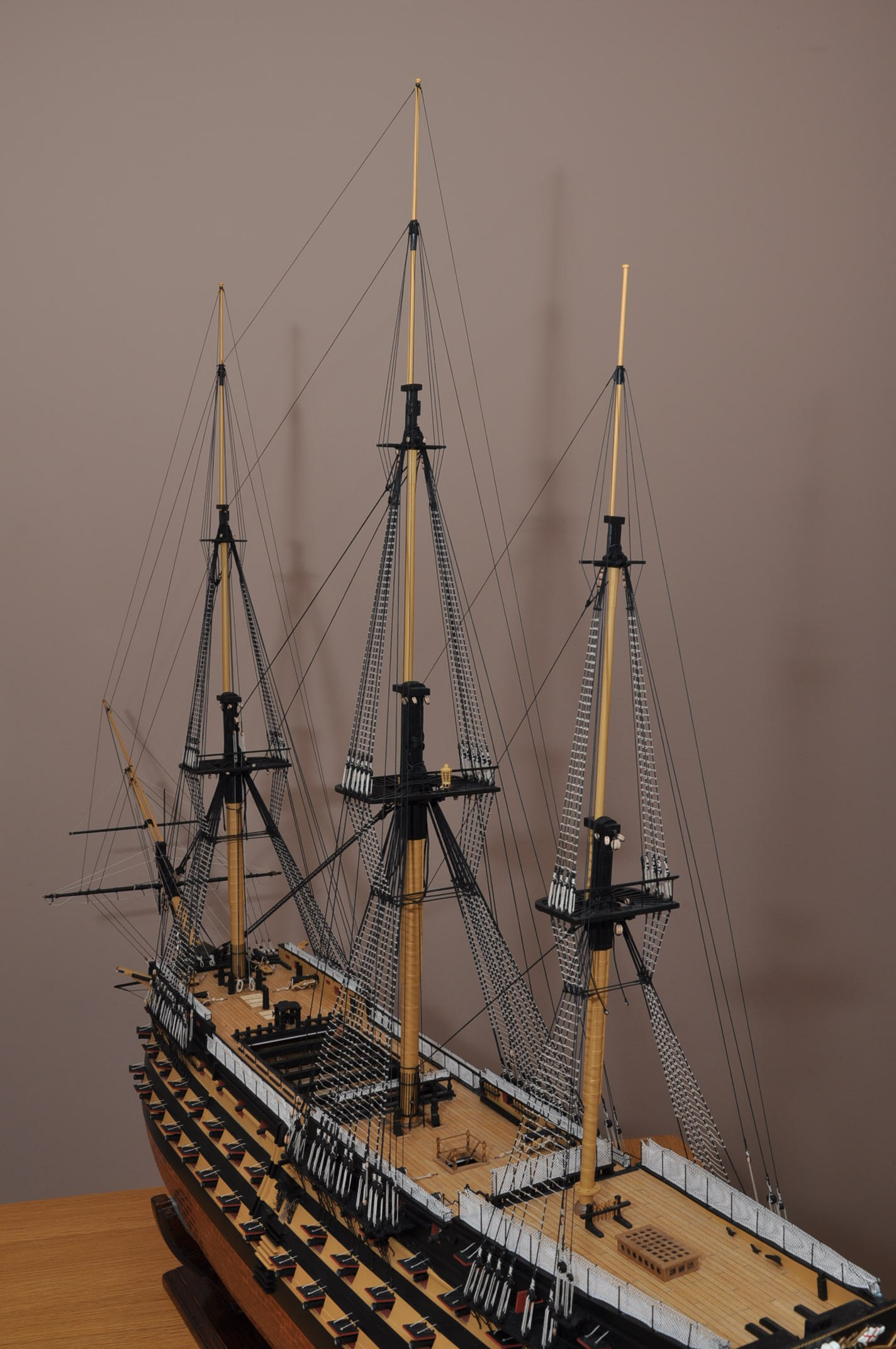 Świetna robota. Bardzo dobrze dobrana grubość lin olinowania stałego z właściwym naciągiem i precyzją wykonania. Z Twojego modelu widać potęgę tego okrętu. Z wielkim uznaniem Janek.