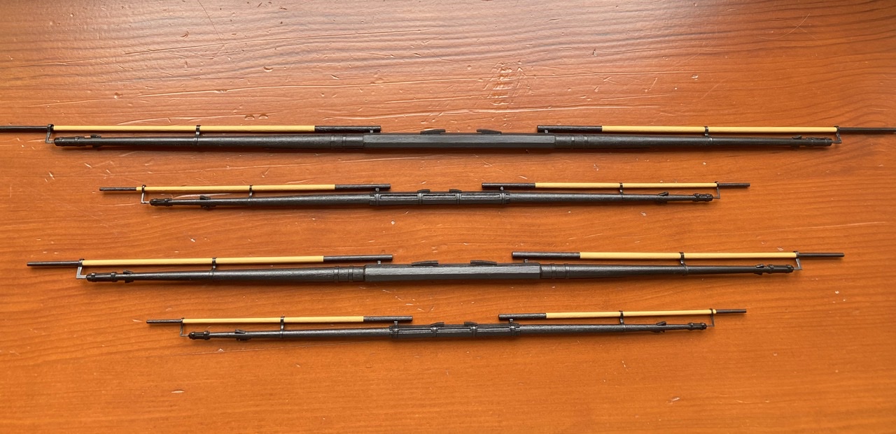 Obecnie skończyłem reje foka i grota z okuciami i wytykami . Pozostałe powinny pójść sprawniej . Pozdrawiam