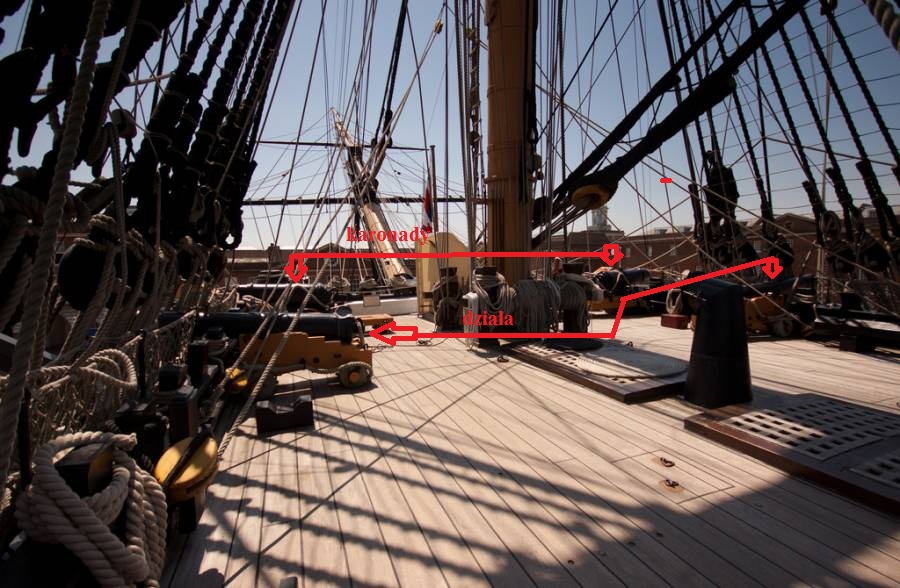 Na tym pokładzie nie ustawiano armat w ten sposób. Tylko na burtach.