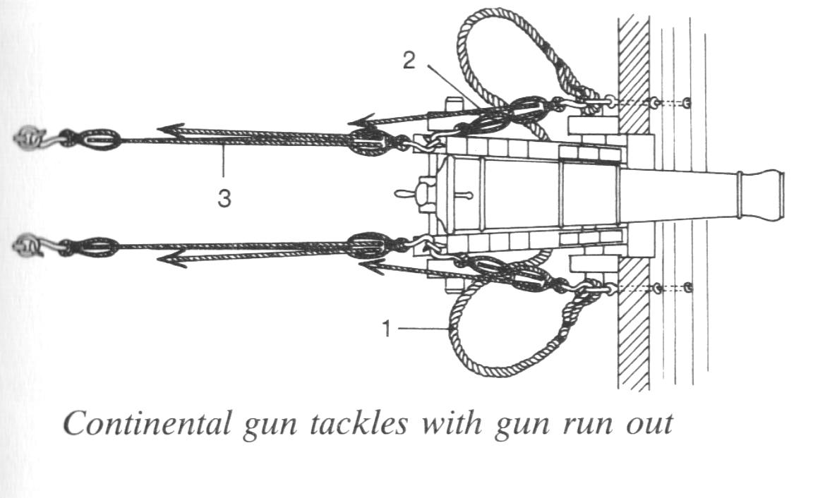 Kejsi,brakuje jeszcze talii do przytrzymywania armaty.Tu na śródokręciu zawieszę.Problem będzie przy tych małych na górnych pokładach.Trzeba będzie niestety jakoś je wymęczyć.Pozdrawiam.K.