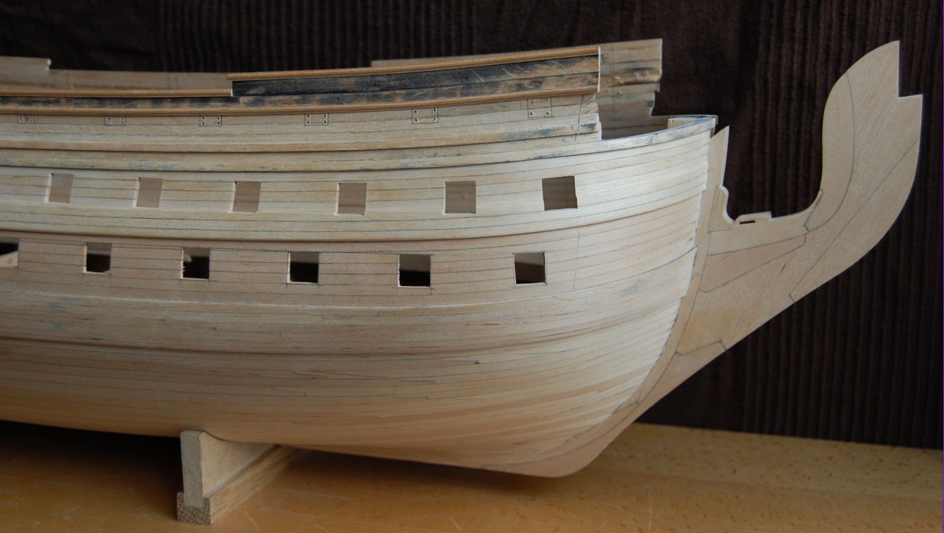 Ostrożnie. Z tego co potrafię odczytać ze zdjęć to rufę masz lepiej wyprofilowaną ode mnie i tam jest wszystko ok. Ja niestety źle odczytałem plany i będę musiał się bardzo ratować bo planki schodzą mi się po zbyt dużym łuku pod pierwszą ozdobną listwą nawisu rufowego.