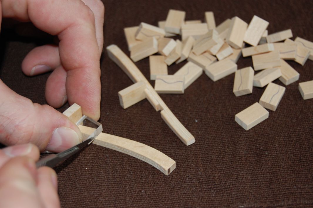 Po zgrubnym wycięciu ambrazur podcinam je skalpelem prawie do linii i dopiero na koniec ostrym tarnikiem przypiłowuję kształt (tarnik długi przechodzi przez ambrazurę na burcie sąsiedniej co pozwala mi chwycić poziomy) . Końcówka to już pilniczek do paznokci i sprawdzian żeby nie przepiłować (na szczęście część sprawdzianów pasuje z Vasy bo ich wypiłowanie jest chyba gorsze niż samo robienie ambrazur).