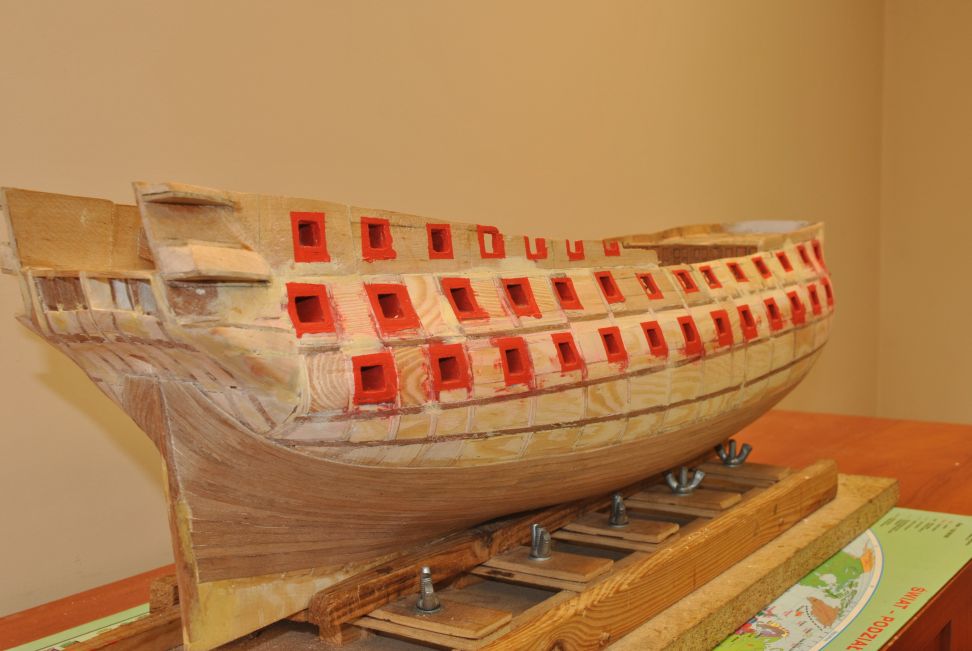 Kadłub ma ostateczny kształt. Przez krótki czas miał tymczasowe poszycie. Przyszedł czas na poszycie fornirowe i w związku z tym mam pytanie. Czy na Bellonie był felc w dolnym luku działowym.