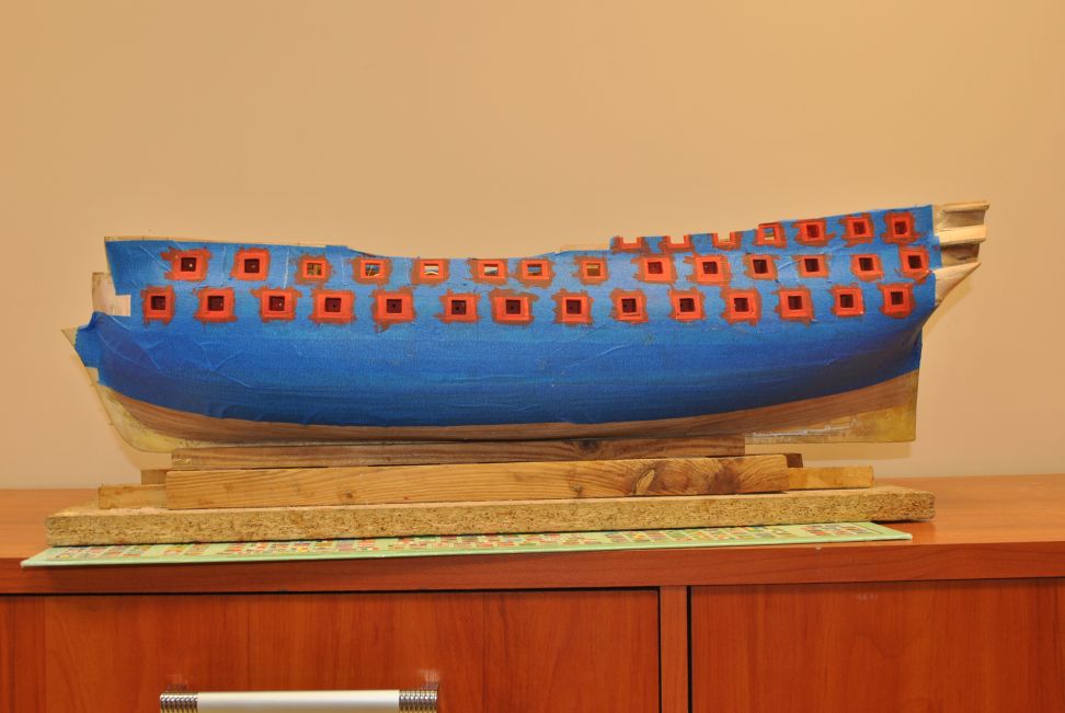Poszycie fornirowe na razie musi poczekać. Odbojnica jest tylko zaznaczona fornirem z hebanu. W dalszym etapie prac pokłady. Może ktoś wie ile talii było przy masztach w tego typu żaglowcach. Co wciągały i jakie miały bloczki. Zabawa dopiero się zaczyna.