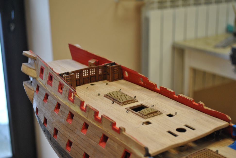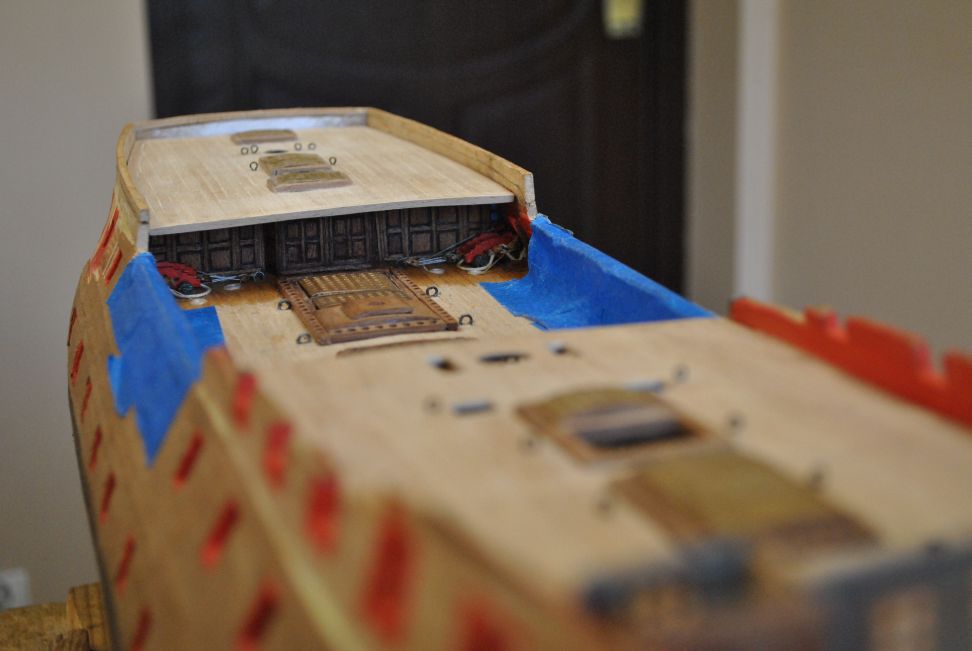 Ja również się skłaniam na kolor czerwony, taki jak na wewnętrznej części burt. Widziałem dużo modeli z podobnego okresu z tym kolorem lawet ( wiem, ze inne modele to nie jest żadne źródło, argument do takiego wykonania).