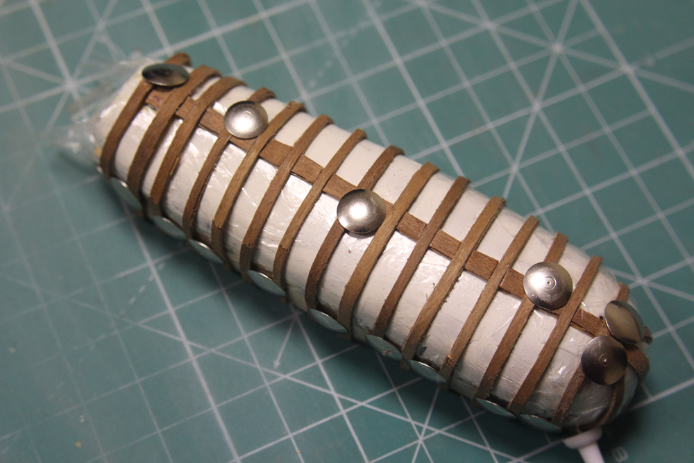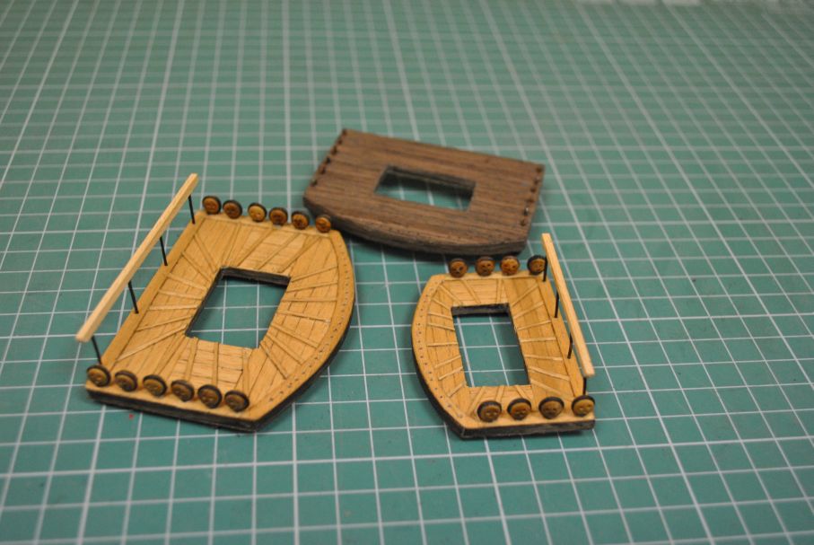 Następny etap to położenie belek pod szalupy. Położenie belek wymaga wykończenia odkrytego pokładu bateryjnego. Lufy zamontowane na odkrytym pokładzie bateryjnym wobec czego można przystąpić do montażu belek.
