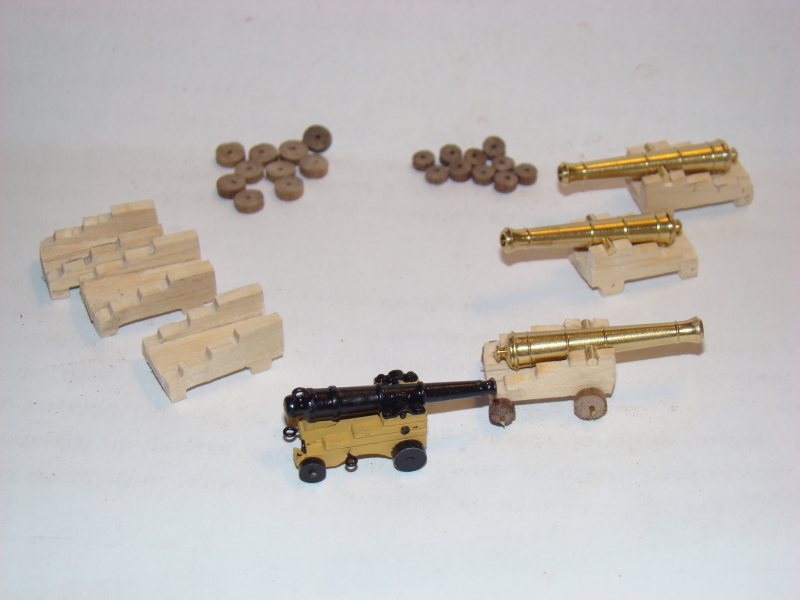 W kolekcji niepoprawnie są też skonstruowane lawety (taka konstrukcja była nieco dawniejsza), a na dolny pokład działowy, dział w ogóle brak i dobrze, że zdecydowałeś się je zrobić, tylko popełniasz kolejny błąd wzorując się (wielkość) na lawecie 12 funtówki. Dolny pokład nosił 32 funtówki i lawety były nieco większe (jak i lufy) i o zupełnie innej konstrukcji.
