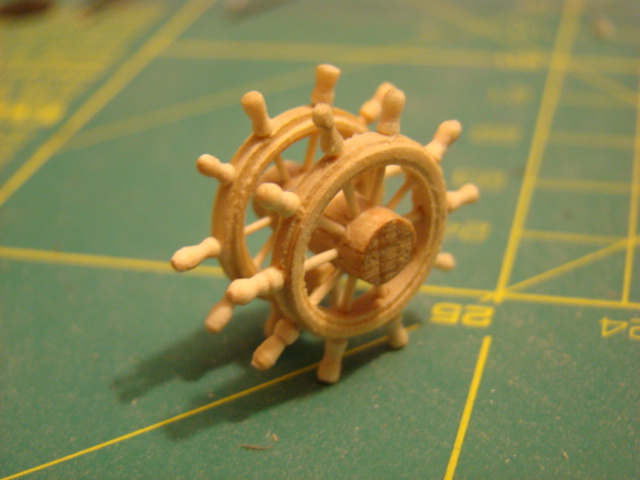nie mam teraz czasu i możliwości na oszlifowanie całkowite kadłuba aby przejść do odbojnic ale podłubię chociaż przy drobiazgach. Na forum przeczytałem opis Karrexa jak zrobić koło sterowe. W związku z tym, że to co dają w zastawie jest żenujące postanowiłem wydłubać własne.