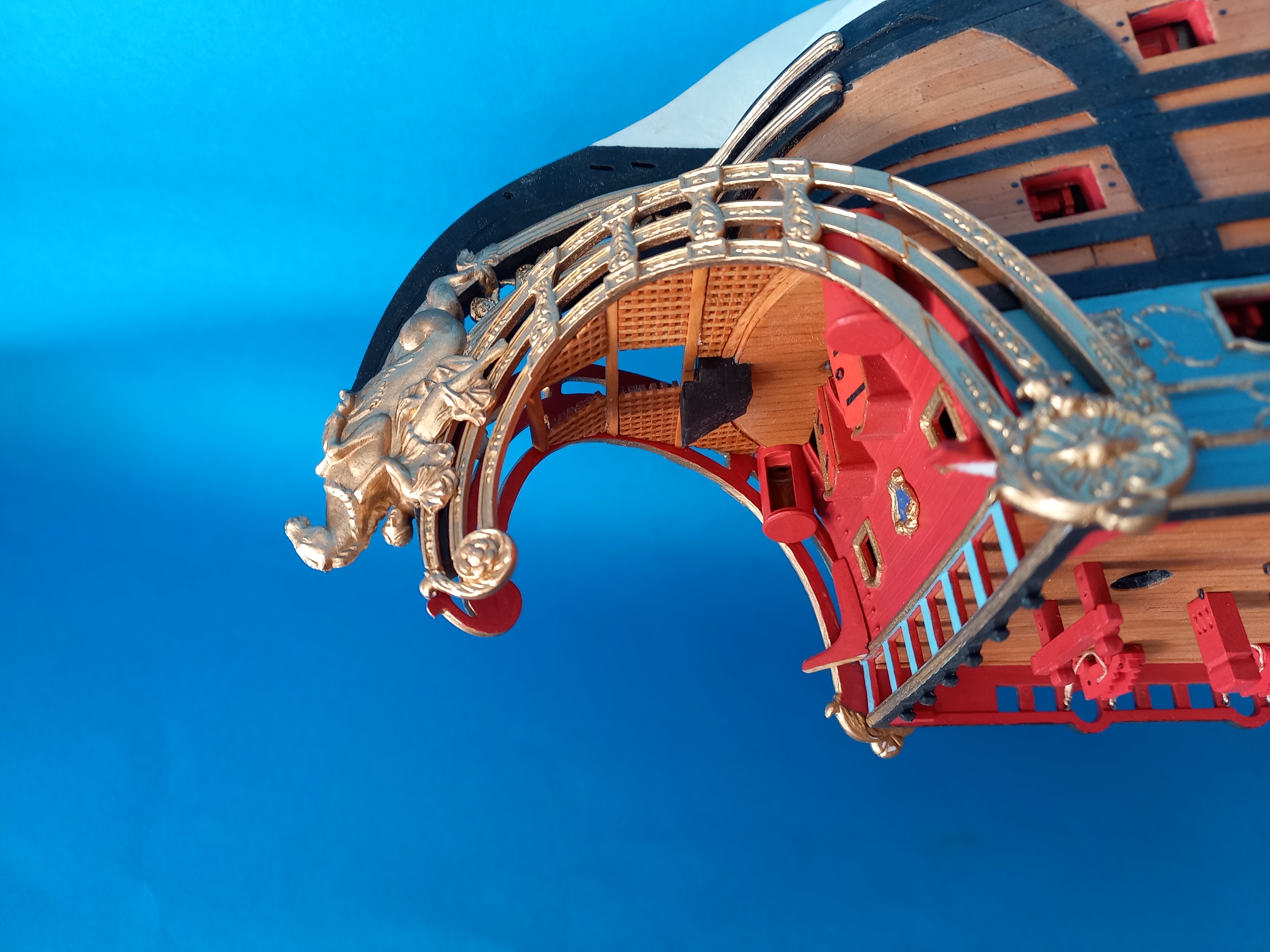 Dziękuję Tomku. Tym razem popracowałem na dziobie. Zamontowałem toalety, które zmodyfikowałem względem tego, co oferuje zestaw tzn. obniżyłem trochę daszek i ustawiłem go skośnie. Poźniej zabrałem się za kosz dziobowy, i wpasowałem gretingi. Pozostało zrobić jeszcze jakieś podpory, żeby ta cała konstrukcja tak nie wisiała w powietrzu, ale to w następnej odsłonie.