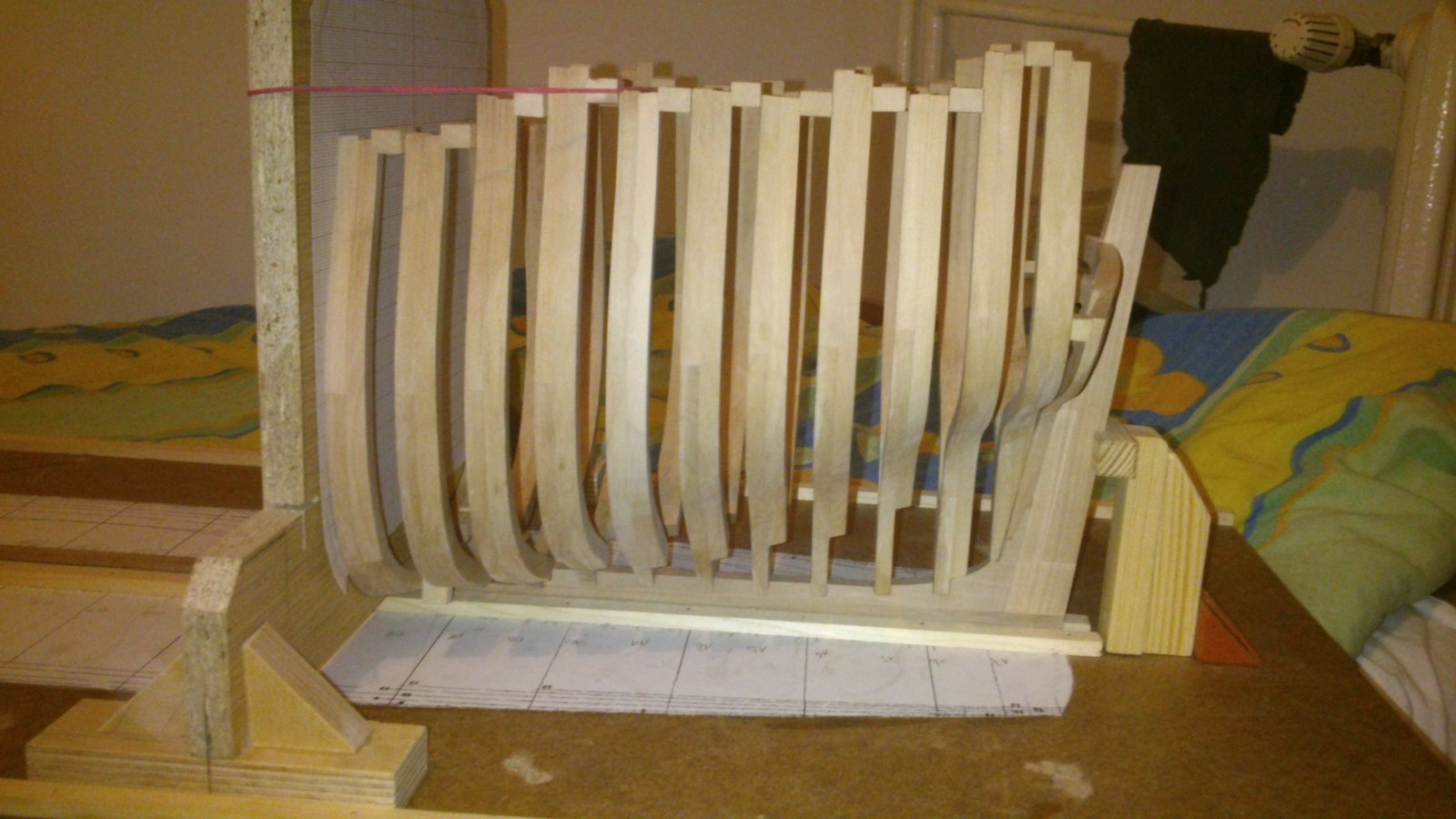 Coraz więcej wręg na swoim miejscu. Nie jest to poziom co u Kagry i Kazka ale jak na razie jestem zadowolony choć już widać że i tak czeka mnie sporo szlifowania i wtedy wyjdzie czy się udało wykonać w miare dobrze kadłub.