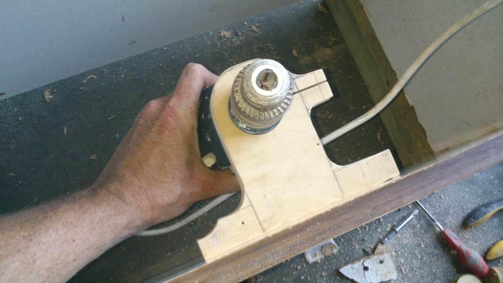 nie bardzo jestem znawcą tematu i nie wiem jaka jest dalsza koncepcja na wykonanie urządzenia ,może odnoszę mylne wrażenie że wiertarka nie będzie miała odpowiednich obrotów , morze fakt że uchwyt jest drewniany nie będzie miał wpływu na stabilność pracy przy obrabianiu elementów.