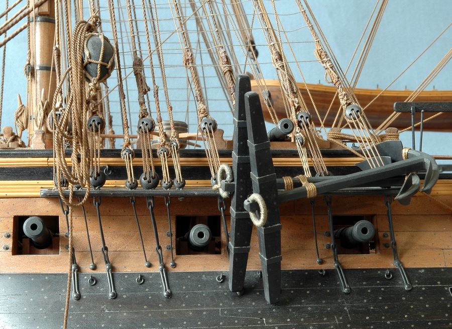 prace nad kadłubem posuwają się do przodu. W międzyczasie studiuję plany i w związku z tym mam do kolegów pytanie dotyczące furt działowych mojej fregaty. Z rysunków zamieszczonych niżej wynika że nie były one zapatrzone w typowe zrębnice cofnięte nieco w stosunku do poszycia zewnętrznego. Był natomiast parapet zaznaczony rysunkach na Pytanie: czy tak było w rzeczywistości, czy też plany są niezbyt dokładne?