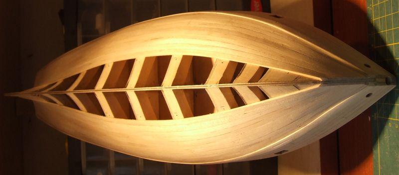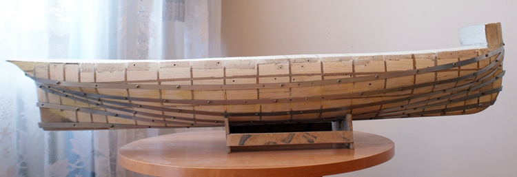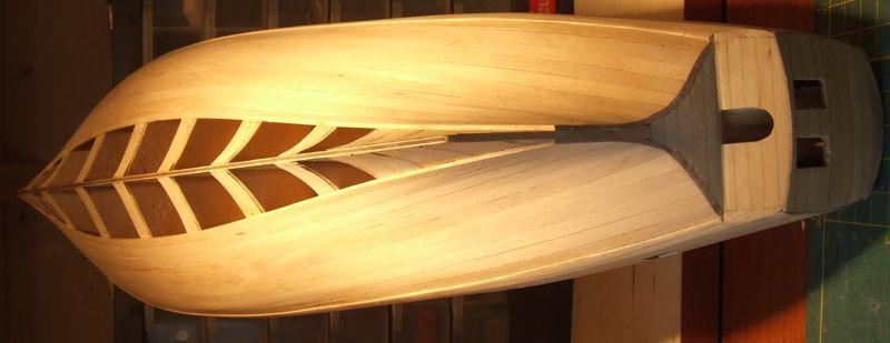 Lay this first batten about 10mm from the keel. DO NOT FORCE the batten into position. It must lie where it wants to go without being forced laterally across its width. If it is forced against its natural flow any other planks cut to this shape will also cause problems when it comes to their laying. Space the other battens as mentioned before at the calculated width to suit your particular planking. Again lay these battens in a natural flow try to obtain something of an equal spacing particularly at the stem and stern areas if possible. If this can’t be obtained do not worry unduly as other methods can be used to break up the pattern and thereby reduce the number of planks going to the problem section. These methods will be dealt with later in a separate section.