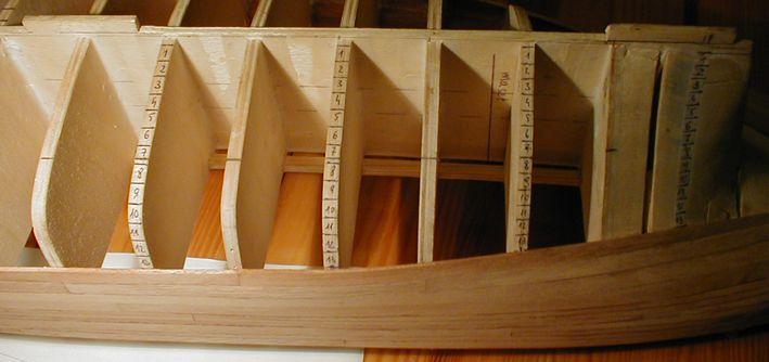 Lay this first batten about 10mm from the keel. DO NOT FORCE the batten into position. It must lie where it wants to go without being forced laterally across its width. If it is forced against its natural flow any other planks cut to this shape will also cause problems when it comes to their laying. Space the other battens as mentioned before at the calculated width to suit your particular planking. Again lay these battens in a natural flow try to obtain something of an equal spacing particularly at the stem and stern areas if possible. If this can’t be obtained do not worry unduly as other methods can be used to break up the pattern and thereby reduce the number of planks going to the problem section. These methods will be dealt with later in a separate section.