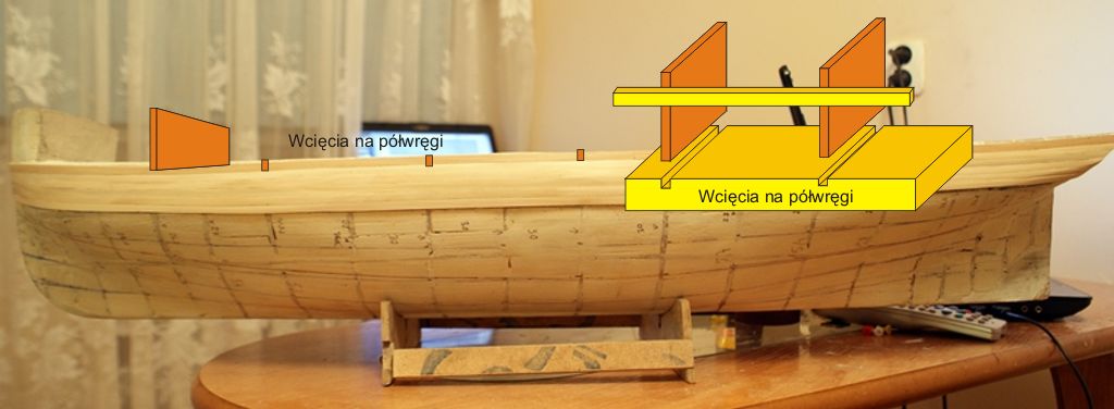 Wojtek-Sos pisze:Po poszyciu kadłuba, na pokładzie działowym postawię półwręgi na których położona będzie burta.