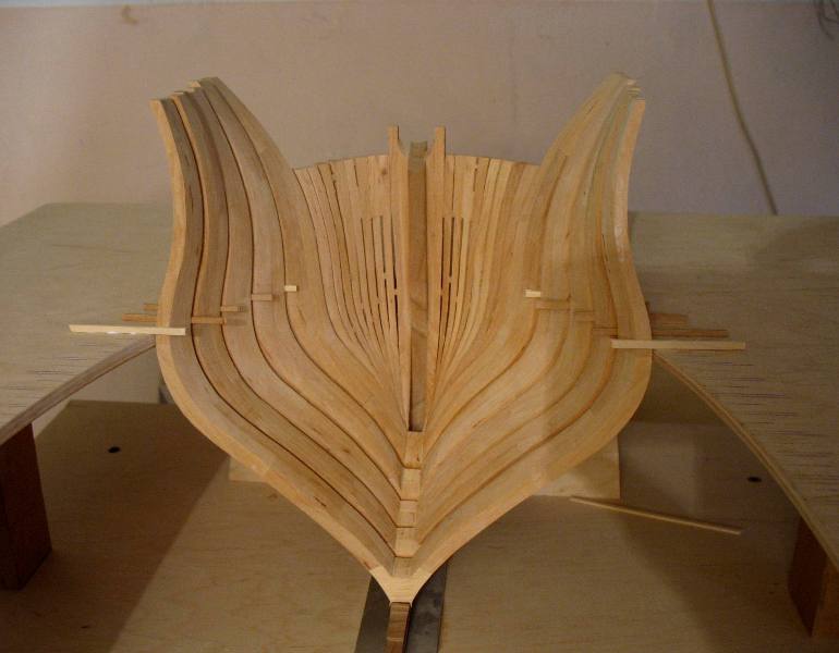 dokleiłem dwie ostatnie wręgi do rufy trochę nietypowe więc sporo kombinowania z nimi było no ale teraz pięknie wszystko schnie :D