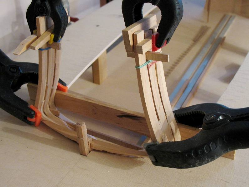 dokleiłem dwie ostatnie wręgi do rufy trochę nietypowe więc sporo kombinowania z nimi było no ale teraz pięknie wszystko schnie :D