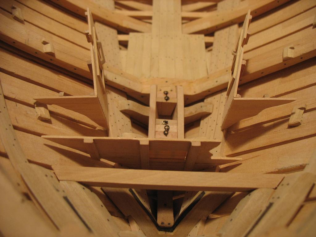 Myszor oczywiście że powinny ale jak widzisz nie wykonałem poszycia więc zrobiłem je troszkę dłuższe i oparłem o wręgi bo w powietrzu wisieć nie dadzą rady :D .Praktycznie nie robiąc poszycie wewnętrznego będę musiał wiele elementów opierać bezpośrednio na wręgach ale tylko na poziomie do pierwszego pokładu później już poszycie będę robił na tym poziomie chodzi o to by przez szpary między wręgami wpadało jak najwięcej światła i było widać jak tam wygląda i co jest zrobione.
