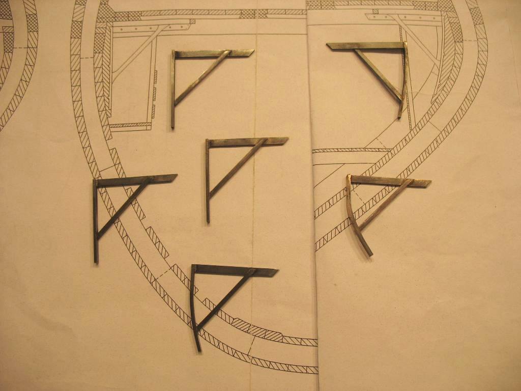 Zabrałem się za robienie wzmocnień pod pokładniki. Pocięte profile zaczynam lutować i czernić do tego wykonałem sobie szablon co pomaga w lutowaniu . Wzmocnienia w zależności od miejsca są pod kątem prostym lub wygięte. Kilka wykonałem w sumie potrzeba mi 58szt ,muszę jeszcze pomyśleć o nitach i będzie można montować .