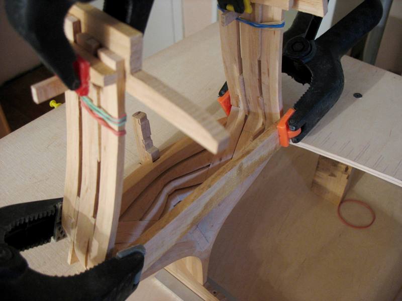 dokleiłem dwie ostatnie wręgi do rufy trochę nietypowe więc sporo kombinowania z nimi było no ale teraz pięknie wszystko schnie :D