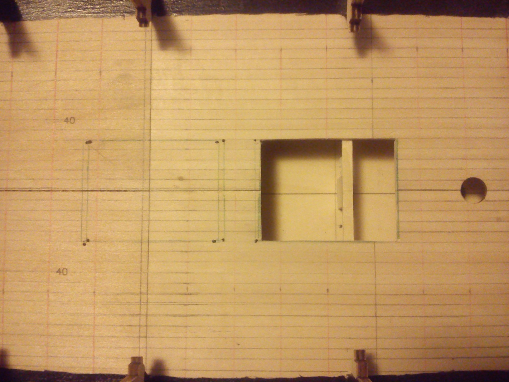 Wytrasowałem na pokładzie środkowym linie deskowania, będą pomocne przy układaniu pokładu tak aby deski były w lini prostej ,zarówno na szerokości pokładu jak i jego długości .