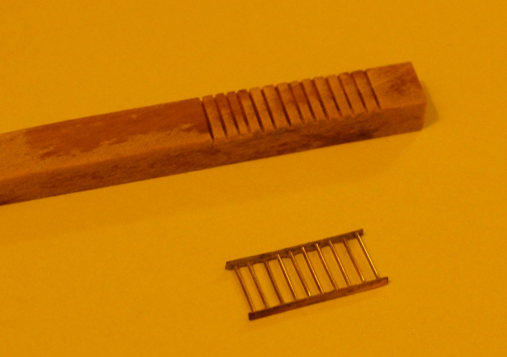 Ruszt (?) zabezpieczający szyby zrobiony z drutu 0.4mm i płaskownika gr.0.3mm. Ponacinałem listewke w odstępach równych rozmieszczeniu pretów, a nastepnie przykleiłem je klejem CA. Same druciki były z naddatkiem. Dzieki temu po wyschnieciu kleju mozna je było wszystkie równo dociąć i przylutować płaskownik. Później w acetonie ładnie to się od listewki odklei. Po krótkich konsultacjach na forum postanowiłem wspomóc się pastą Amasan LF 3. Bez niej bym tego nie zlutował i tylko żałuję , że nie miałem jej wczesniej.