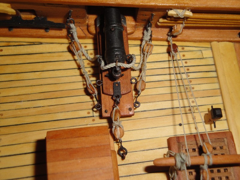 Zaczynam olinowanie karonad. Bloczki (3mm) i haczyki od Mirka. W linki (1mm i 0,25mm) zaopatruje sie tu: http//home.foni.net/~agondesen/ Metody wykonania olinowania byly czesto dokladnie opisywane na forum (np. Kagra-Wappen von Hamburg), tak ze nie bede tego powtarzal.