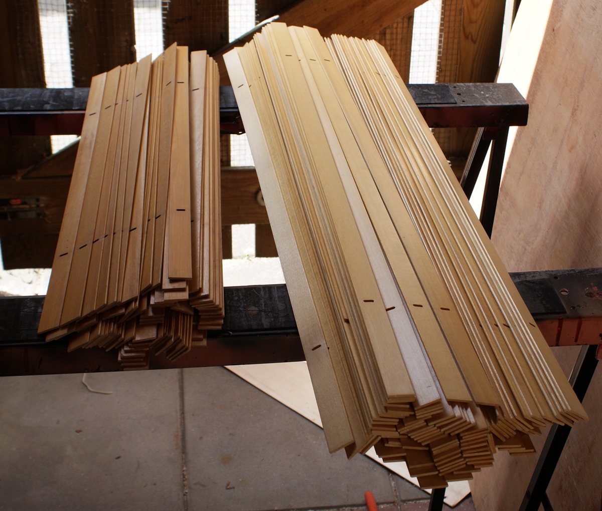 Ciąg dalszy po przerobieniu desek gruszy na listewki i deseczki. Dechy gruszy leżały na strychu około 6-7 lat.