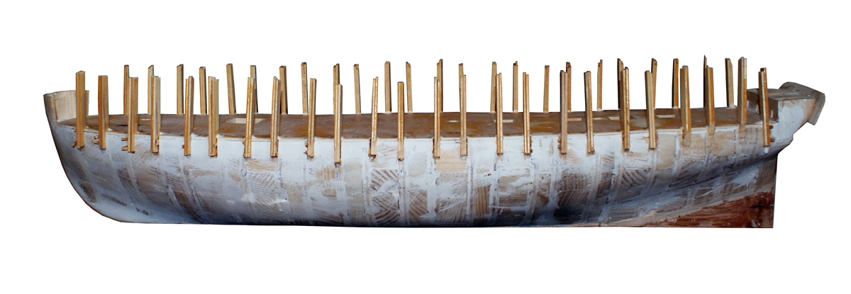 Wsporniki nadburci zostały wklejone z odpowiednimi naddatkami. Po wyschnięciu kleju zostaną obrobione do właściwego kształtu i wysokości