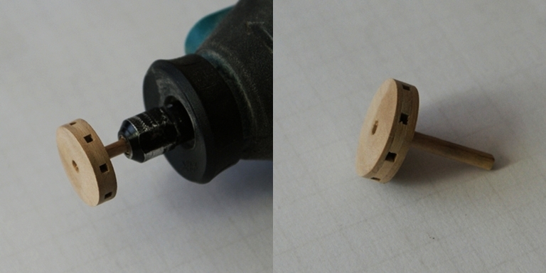 Kabestan sklejony. Po wyschnięciu przetoczenie, a właściwie przeszlifowanie na gotowo wg. rysunku