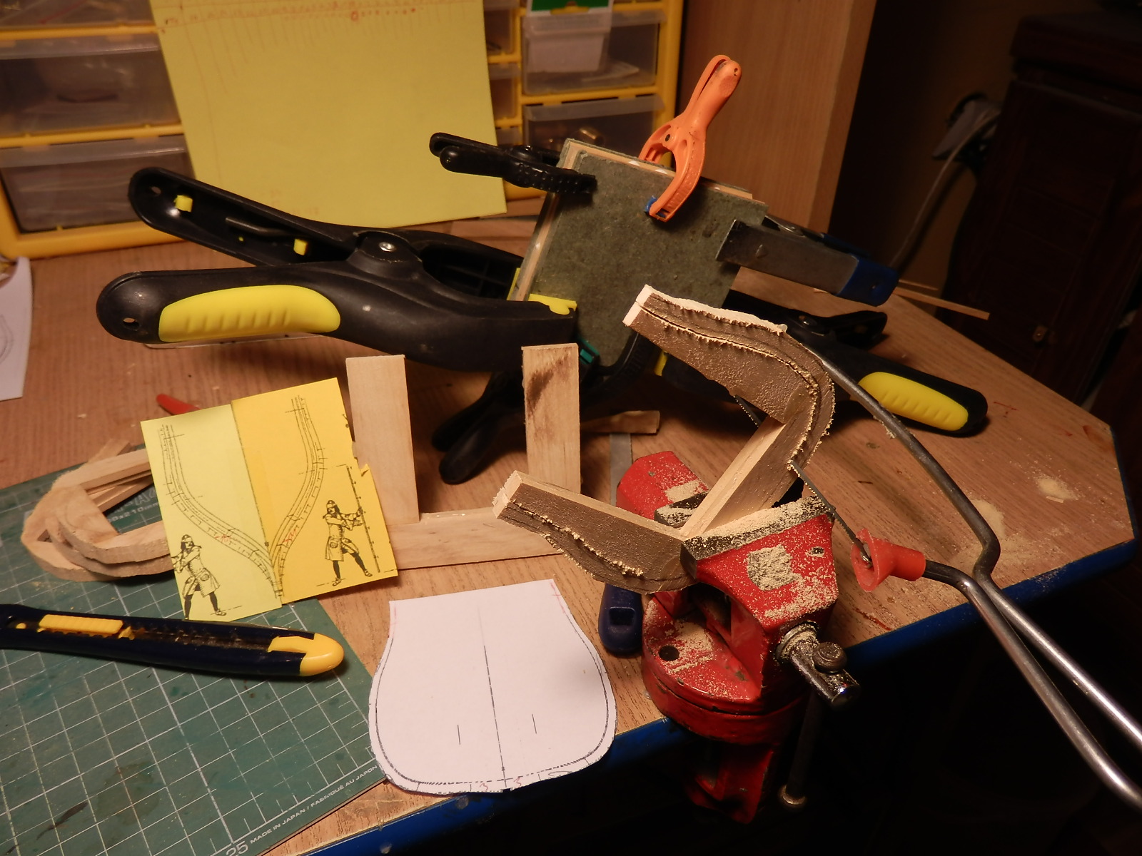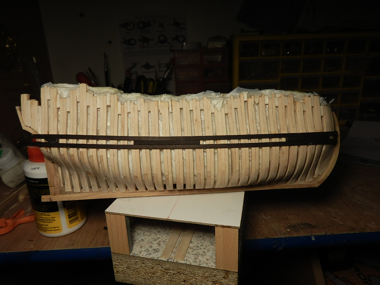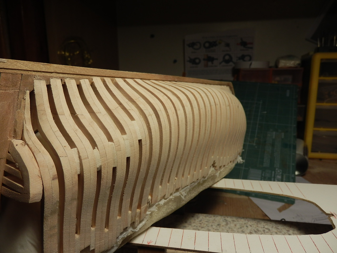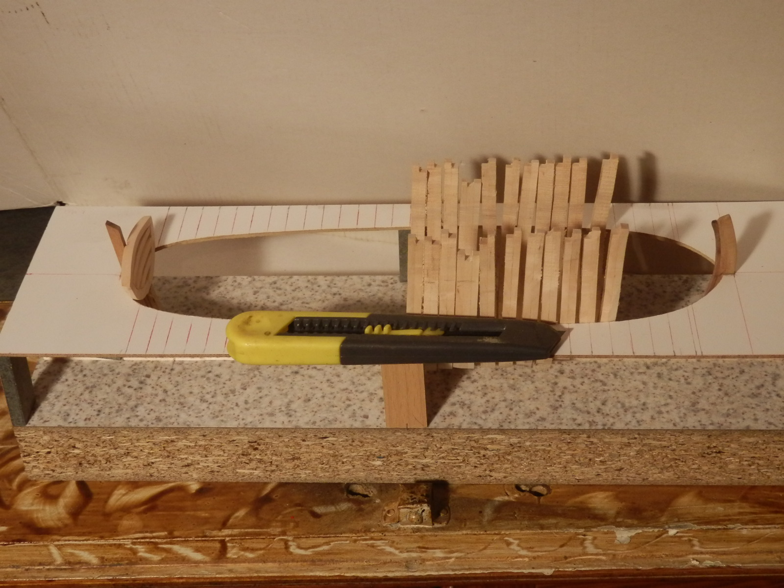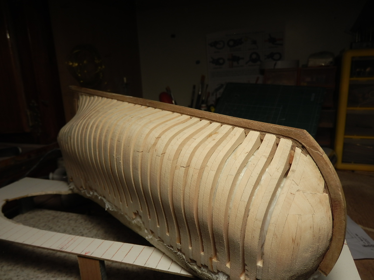 Tak więc sklejam i wycinam ,,,jak już to zrobię to zajmę sie dokładnym ustawieniem i szifowaniem,,a na koniec klejenie i odcinanie naddatków,,puki co każda wręga ma około 2cm nadnatku