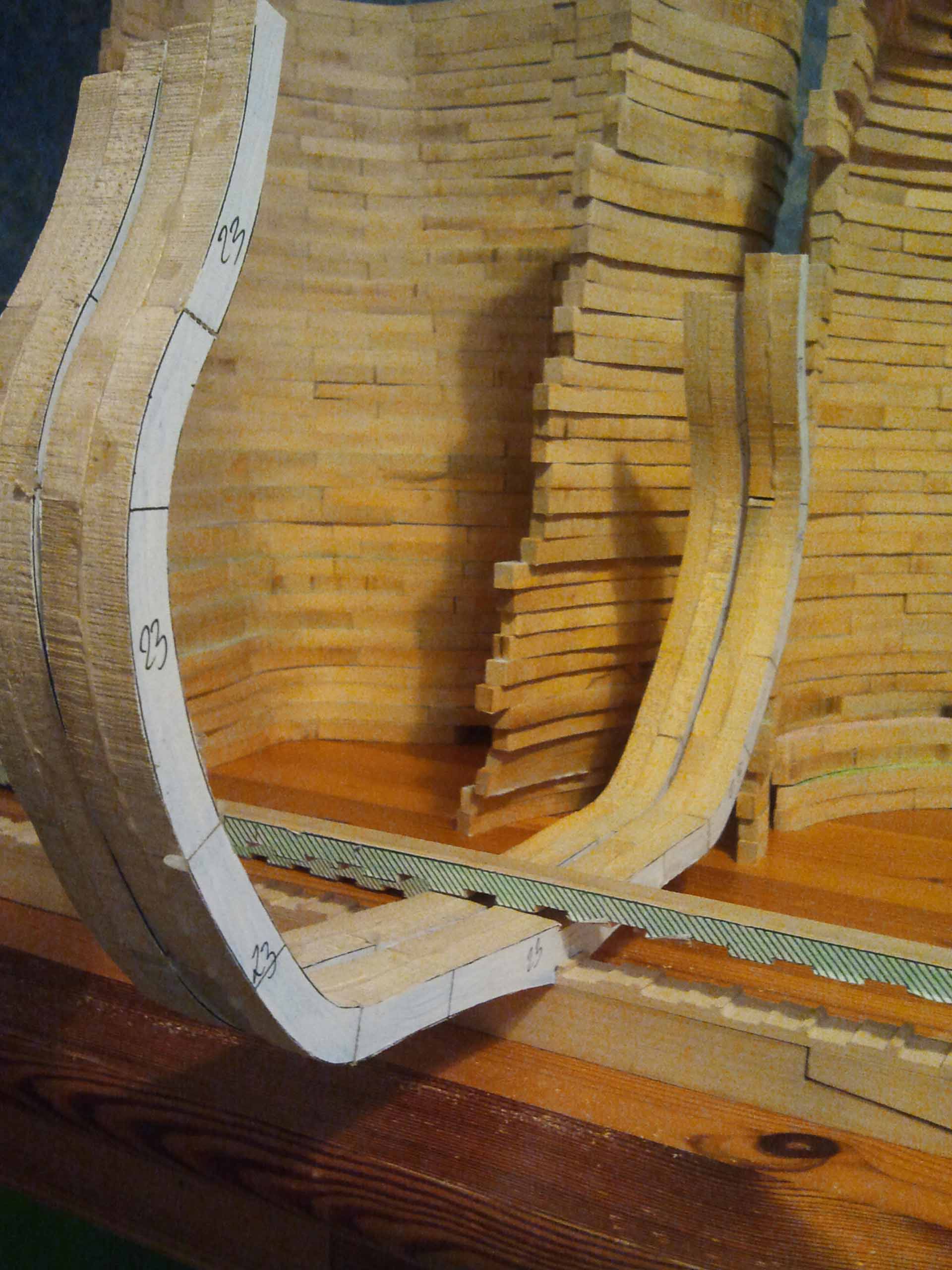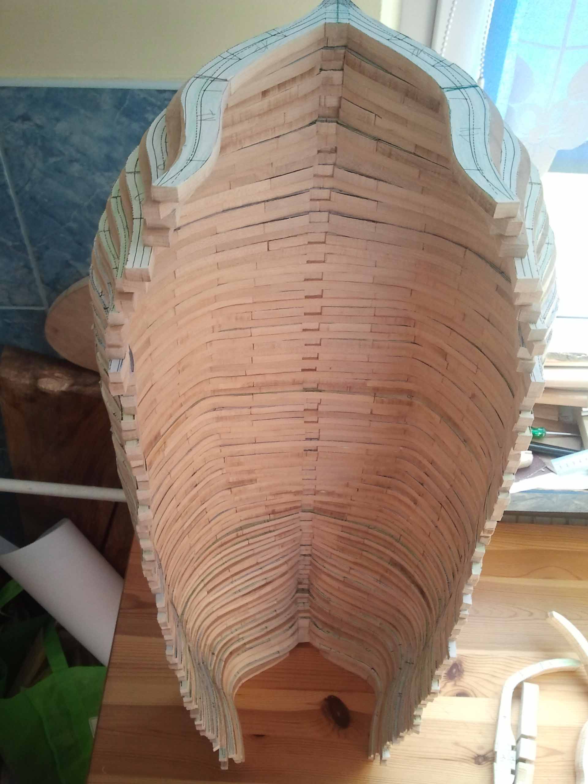 Wszystkie wręgi wycięte i sklejone.Teraz kolej na szlifowanie i budowę stoczni.