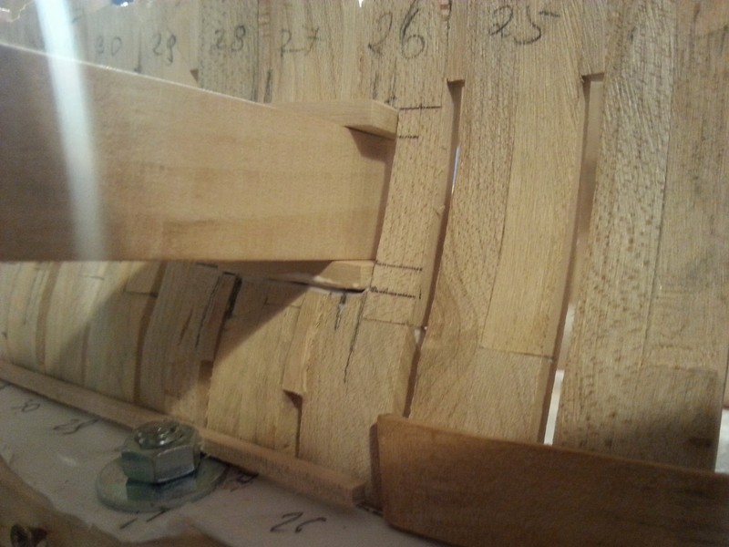 Otwory na sterburcie gotowe.Nadmiary usunięte za pomocą dłuta,hebelków i lekko przeszlifowane.