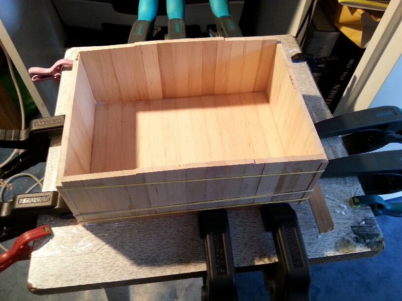 Elementy skrzyni są robione w tzw."międzyczasie" pomiędzy pasowaniem,gięciem ,suszeniem,i klejeniem elementów poszycia wewnętrznego Salamandry.Ja w przeciwieństwie do niektórych użytkowników robię model redukcyjny w klasie C1 ze wszystkimi elementami w tym z całym poszyciem wewnętrznym. Nie zadowala mnie kilka listewek na burtę i pełnia samozadowolenia z tego powodu, że poszycie wewnętrzne gotowe. :)