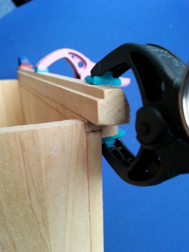 Obramowanie skrzyni łączące ją z pokładem skończone. Listwa została wyfrezowana na frezarce ręcznej górnowrzecionowej prezentowanej na początku relacji. Użyłem frezu walca i V 60°.