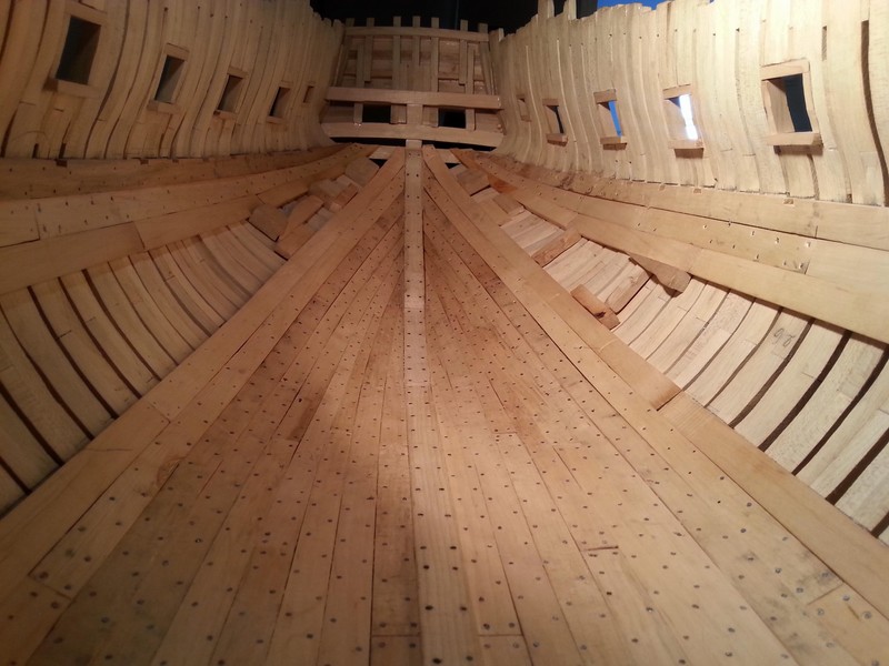 Pozostało jeszcze do położenia po trzy listwy na burtę i poszycie będzie skończone do wysokości pokładu głównego.Pozostanie dostruganie i doszlifowanie listew ponieważ ich grubość płynnie się zmniejsza od pokładu do stępki (od 6mm do 3,5 mm przy stępce).