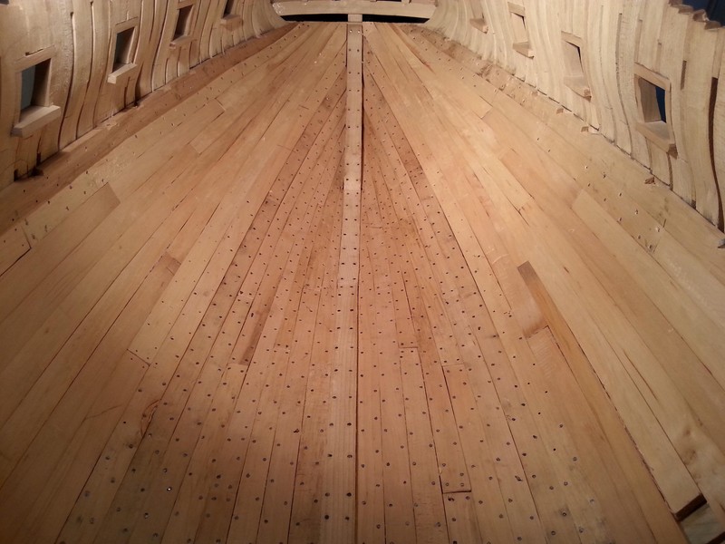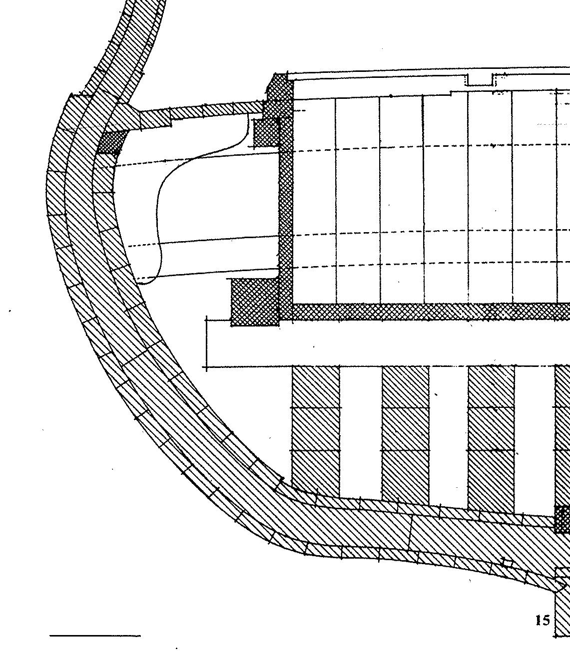 W Victory było odwrotnie. Grube dechy były w części dennej i stopniowo zmniejszały swą grubość w kierunku pokładu. Jedyne grubsze deski powyżej linii wodnej znajdowały się na tzw. pasach wzmocnień. Widocznie Francuzi stosowali inne metody.